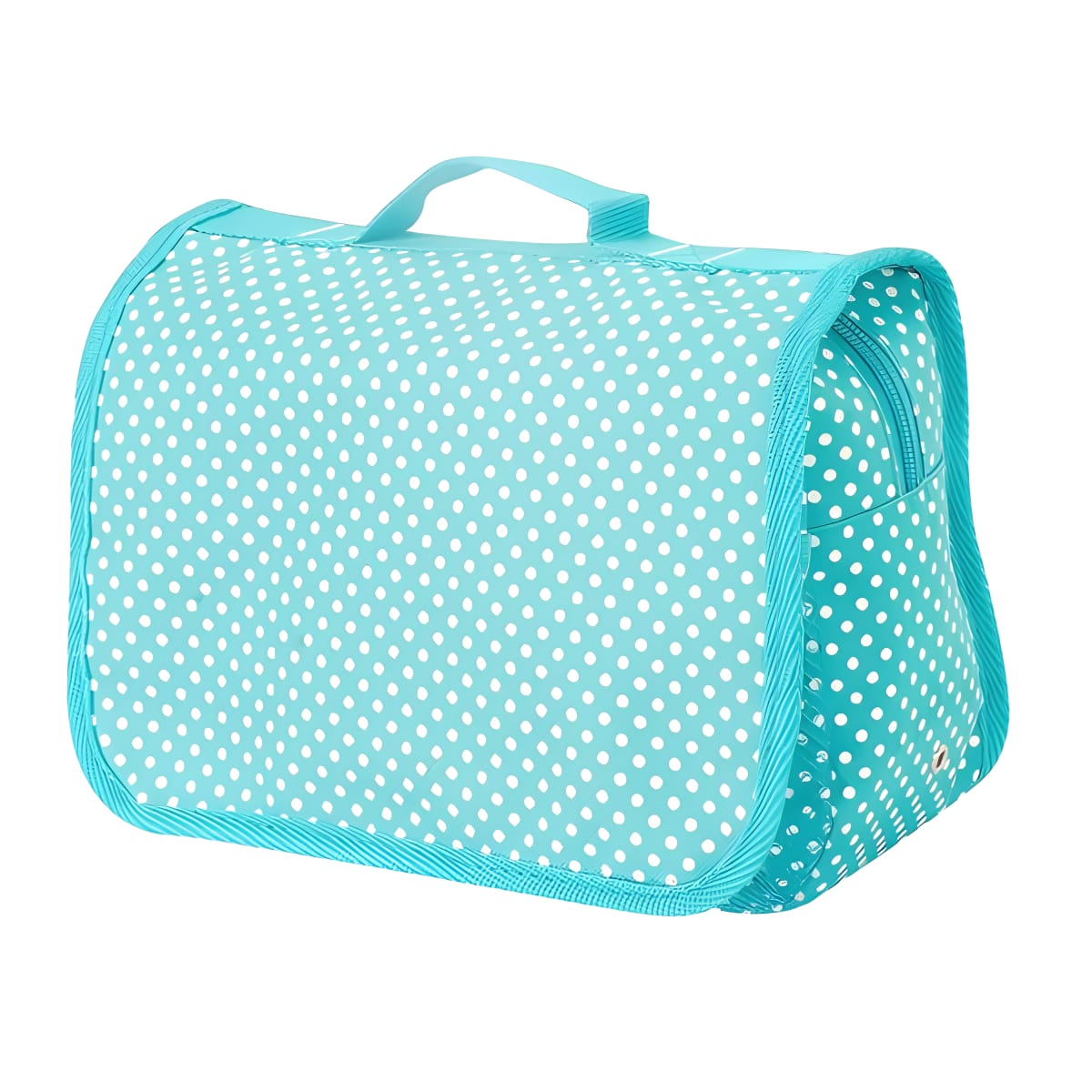 Discover the perfect rolling toiletry bag – opens into three sections and secures with a sturdy buckle. Features a large central compartment with mesh pockets, two internal mesh compartments, and an external back pocket. Built-in hanging hook and internal mirror for added convenience. Easy to carry with a sturdy handle. Dimensions: Height 17 cm, Width 27 cm, Depth 9 cm. Volume 4 liters. Ideal for silk printing and personal embroidery.