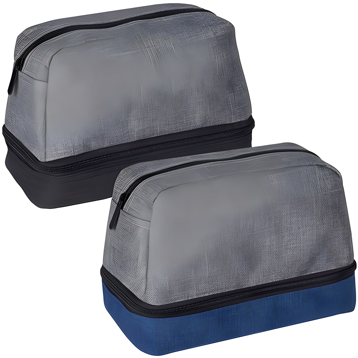 Perfect travel toiletry bag featuring dual compartments for organized storage. Dimensions: 25x14x16 cm. Available in sleek color combos: Grey-Blue and Grey-Black. Crafted from high-quality materials, ensuring long-lasting durability. Ideal for organizing personal items like toiletries and accessories. Upgrade your travel experience with this toiletry bag.