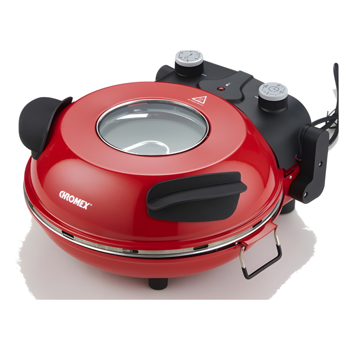 תנור פיצה מקצועי מבית כרומקסמאפייני המוצר:אופים פיצות עד קוטר של 31 ס"מעוצמה חזקה של 1200W עם אלמנטים חימום כפוליםטווח טמפרטורה של 360-400°C