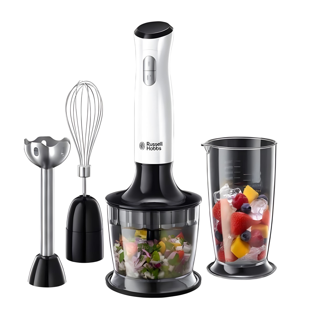 Equipped with two speeds, perfect for whisking, chopping, and making smoothies effortlessly.