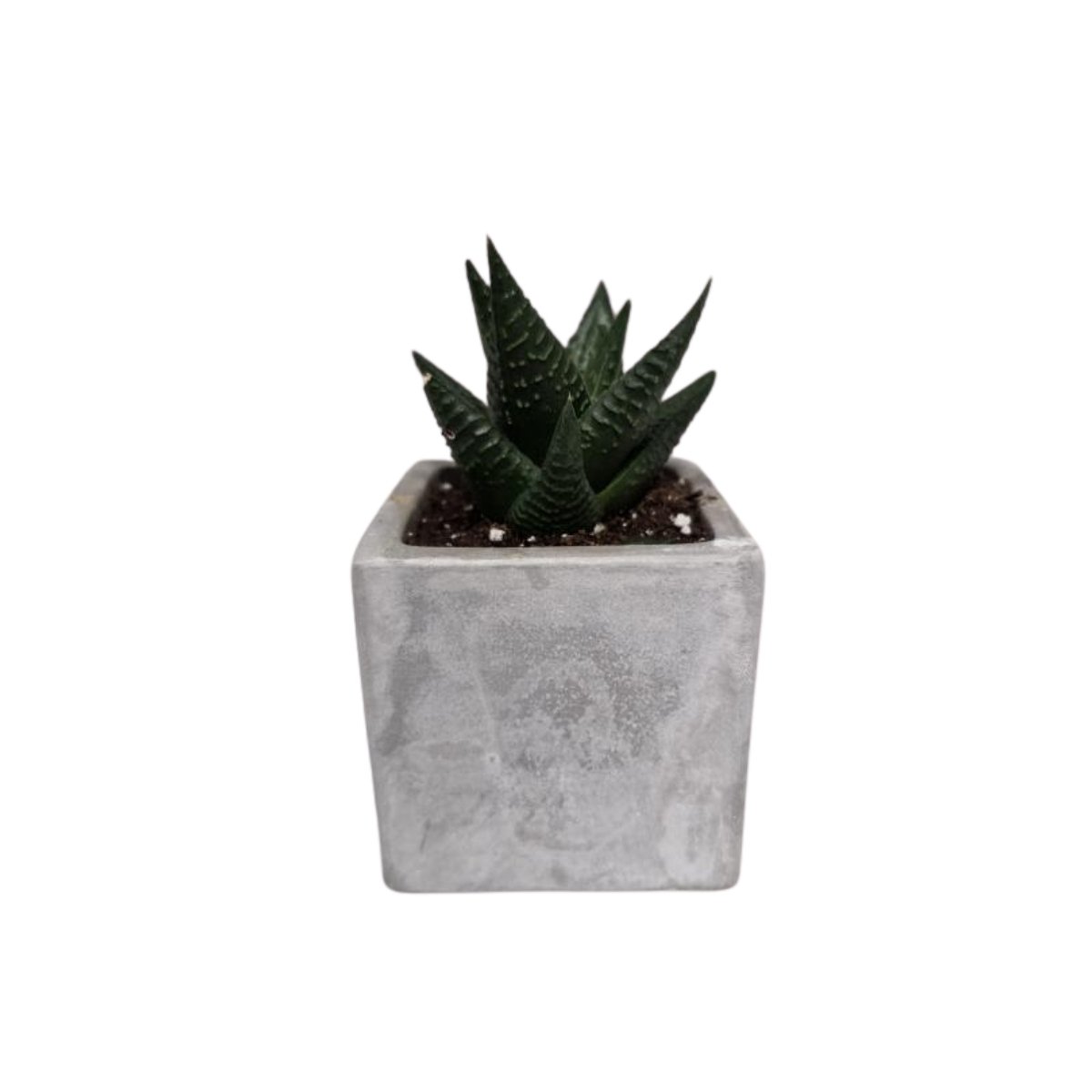 עציץ בטון עם סוקולנט - גודל 7 ס"מ