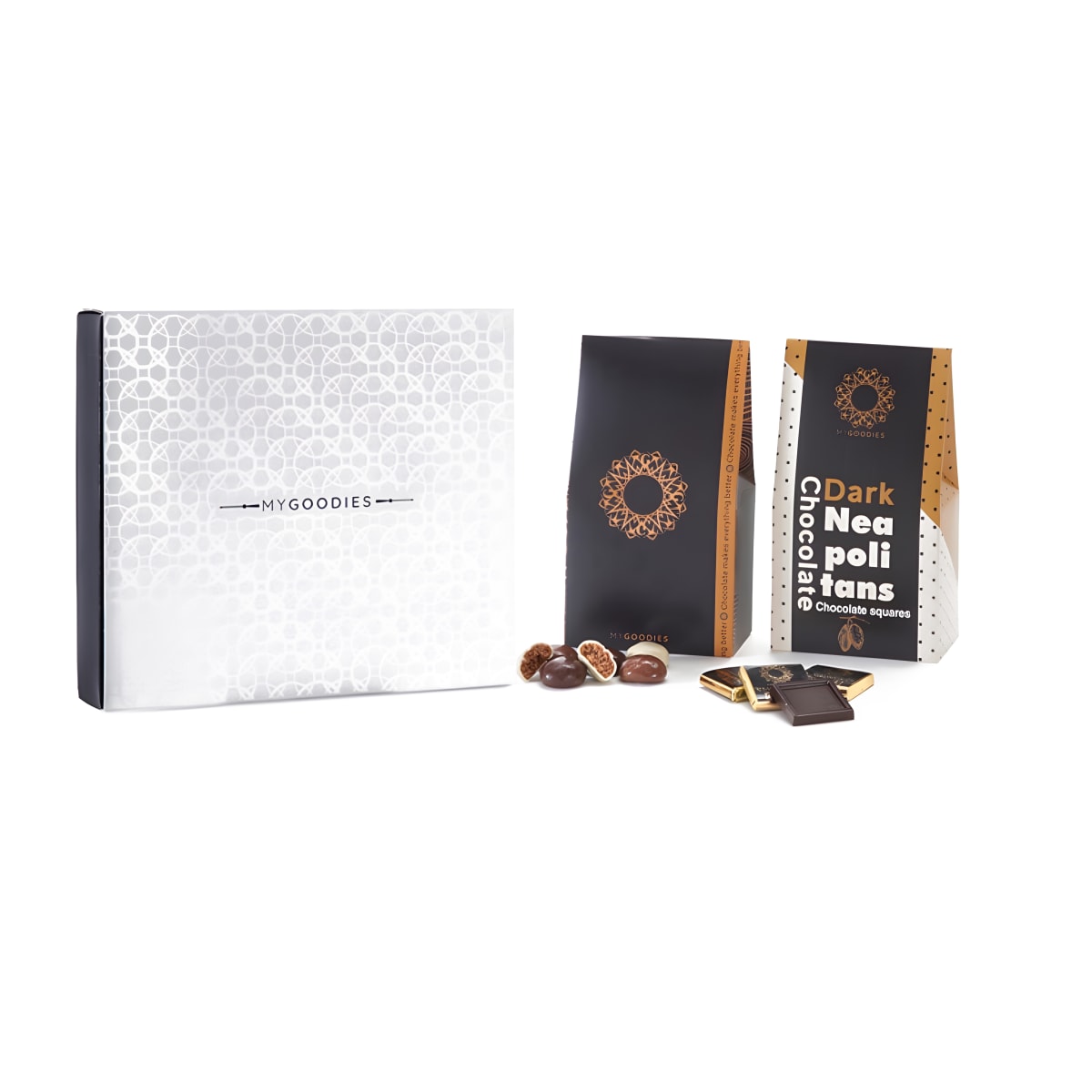 פנקו את עצמכם עם קופסת הפינוקים, הכוללת נפוליטנים של שוקולד מריר עם 70% מוצקי קקאו, בשילוב עוגות דבש קראנצ'יות עטופות בשוקולד חלב, לבן ומריר