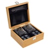 מארז מתנה יוקרתי ושימושי לכל חובבי הוויסקי. המארז כולל: שתי כוסות וויסקי, 8 אבני 'קרח' מבזלת טבעית לשמירה על טעם הוויסקי ללא דילול, שקית קטיפה לשמירת האבנים בהקפאה ומלקחיים לנוחות השימוש. מידות המארז: 20x18x9.5 ס"מ. גודל הקוביה: 2 ס"מ מרובע.