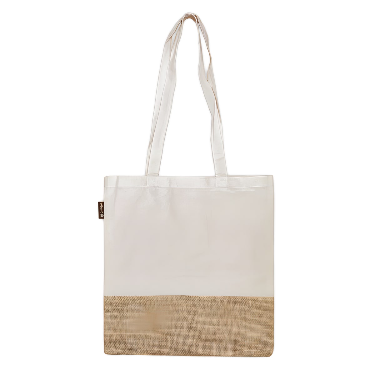 Discover our stylish tote bag crafted from a luxurious blend of cotton and durable jute. Offering a lightweight feel at 140 grams, with a sp