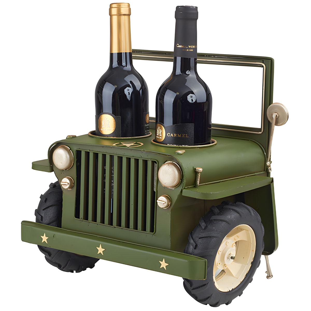 מעמד ייחודי לשני בקבוקי יין בצורת ג'יפ