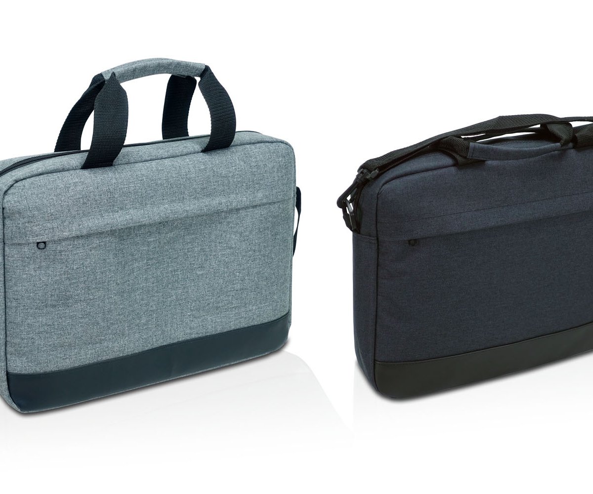 Stylish hand and shoulder bag for laptops made from high-quality dual-tone fabric. Features a spacious main compartment and a small front po