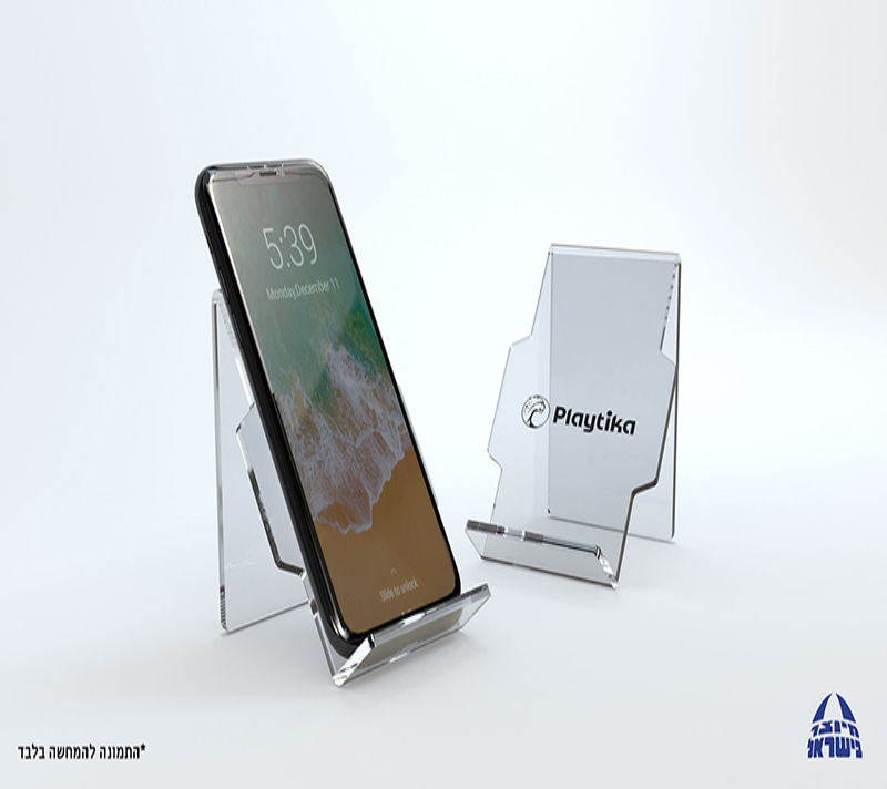 מעמד לנייד Wave מעוצב ומודרני, עשוי מפלסטיק שקוף או שחור, בגודל 7.5X8.5X8 ס"מ. אידיאלי למיתוג אישי בצבע אחד, המעמד מספק יציבות ונוחות לשימוש יומיומי.